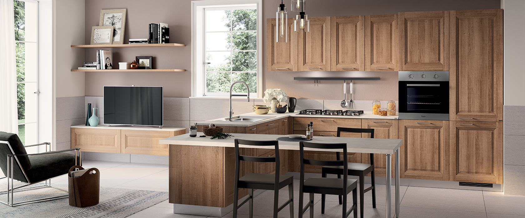 Essenze di legno e amore per i dettagli contraddistinguono la cucina Madeleine che conquista con l’armonioso equilibrio tra tradizione e gusto contemporaneo.