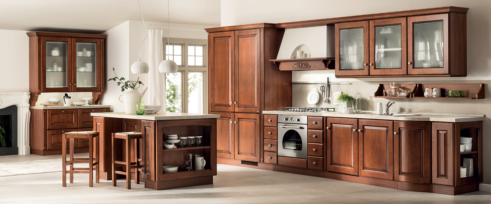 Appeal sofisticato e amore per la tradizione in una cucina che coniuga il fascino del passato con un elegante concept contemporaneo. La cucina Baltimora oltre al calore del legno vanta soluzioni tecnologiche e finiture inedite.