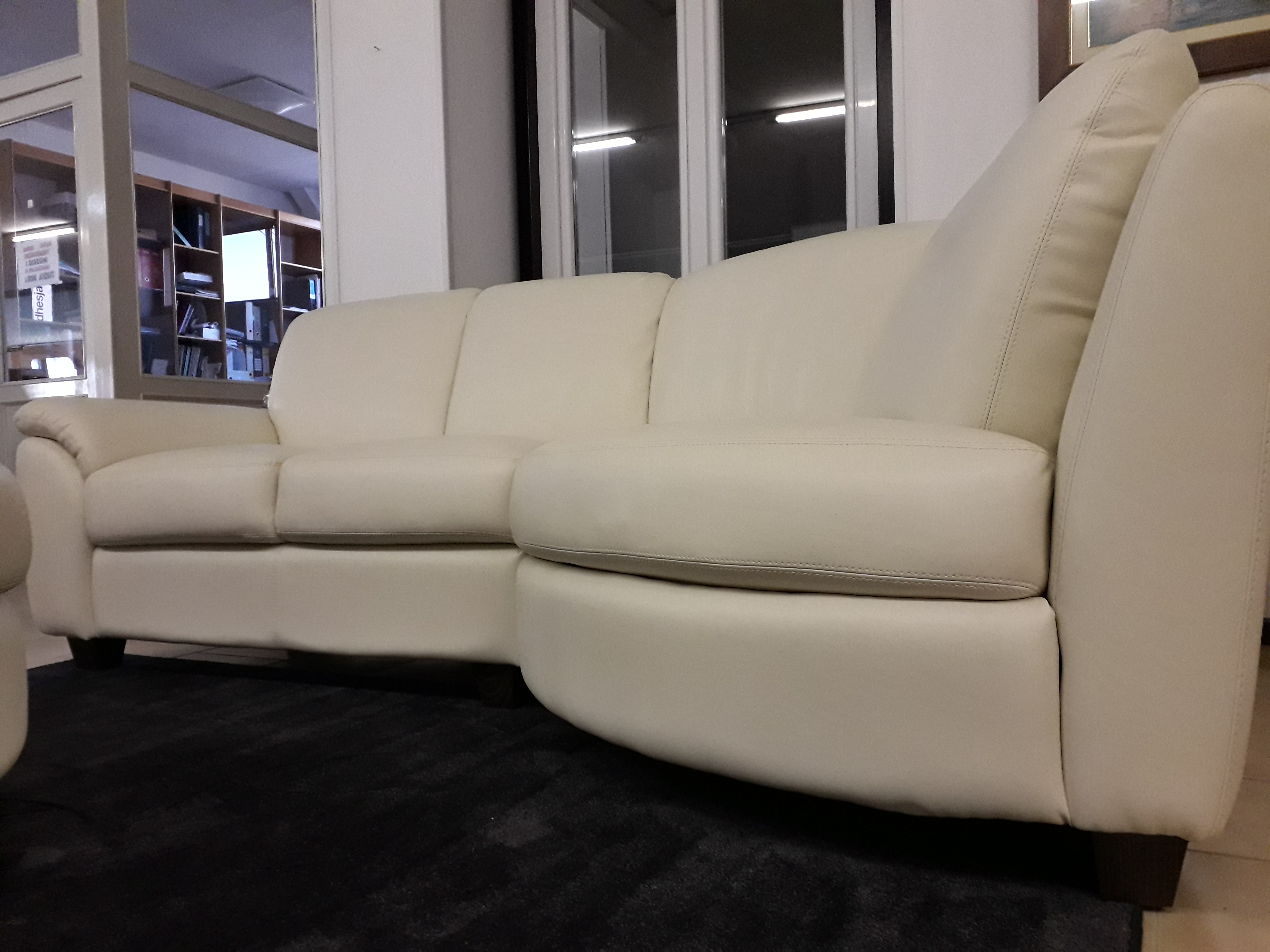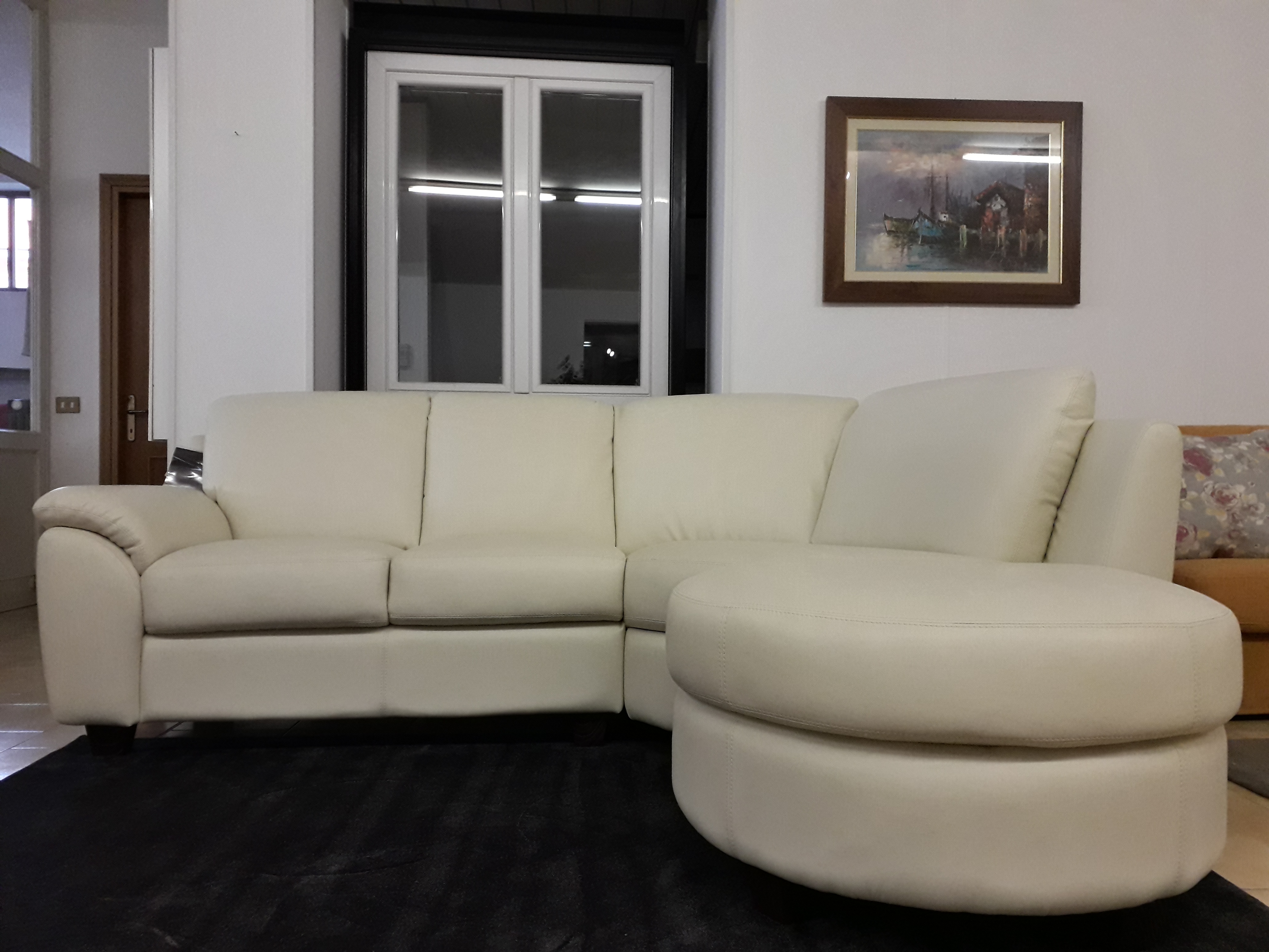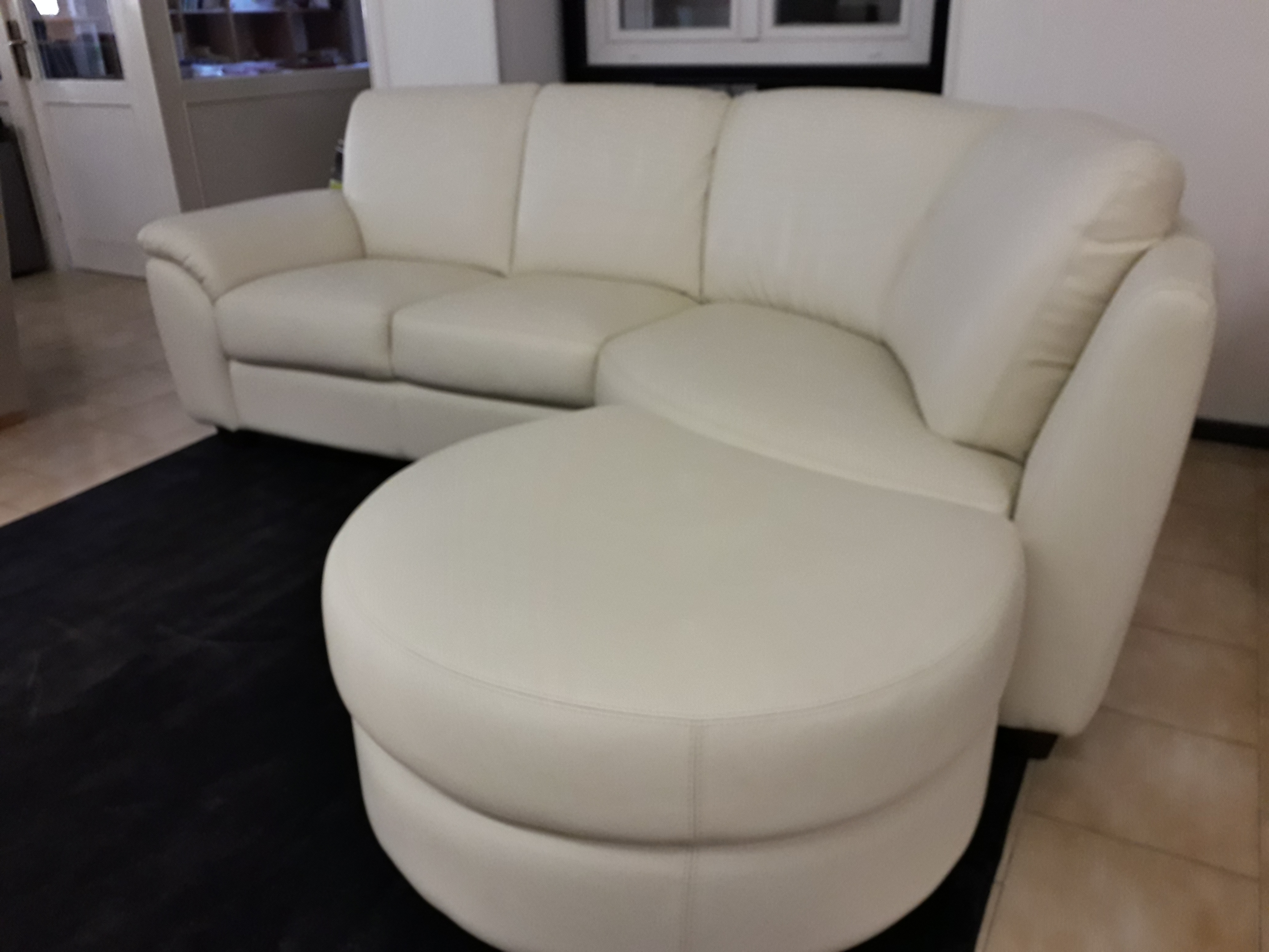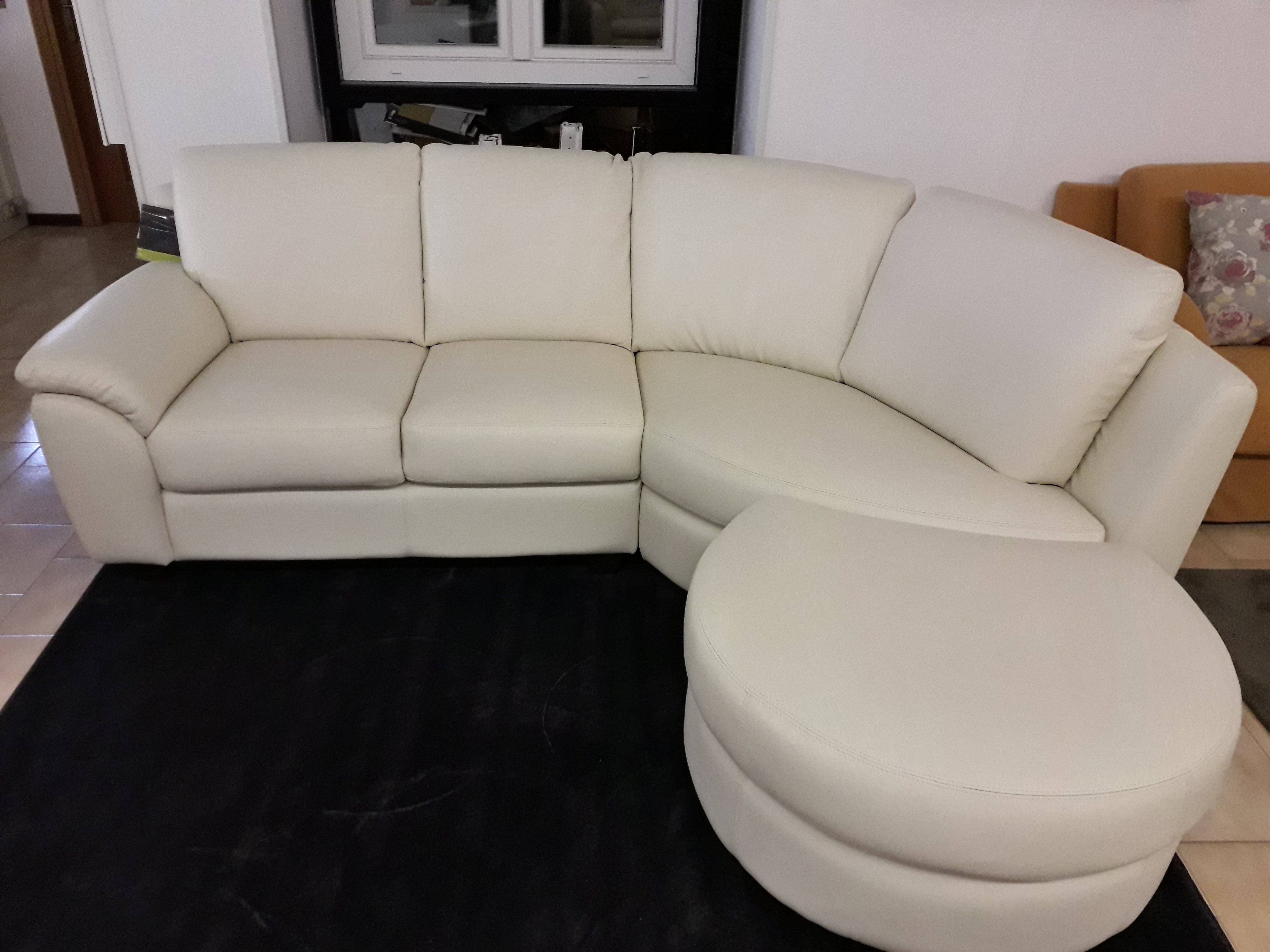 Divano in pelle con angolo curvo e pouf a mezzaluna