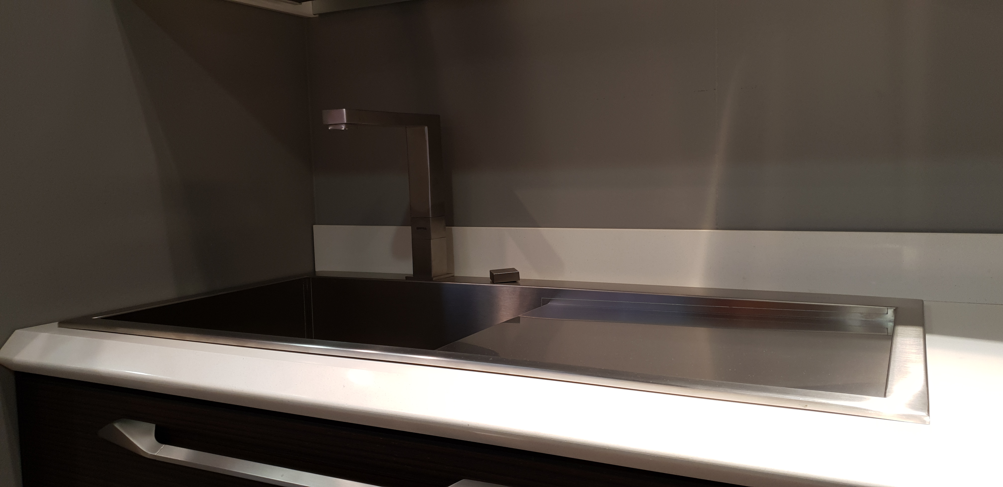 Lavello: 1 Vasca con scivolo inox da incasso Franke , completo di miscelatore squadrato.