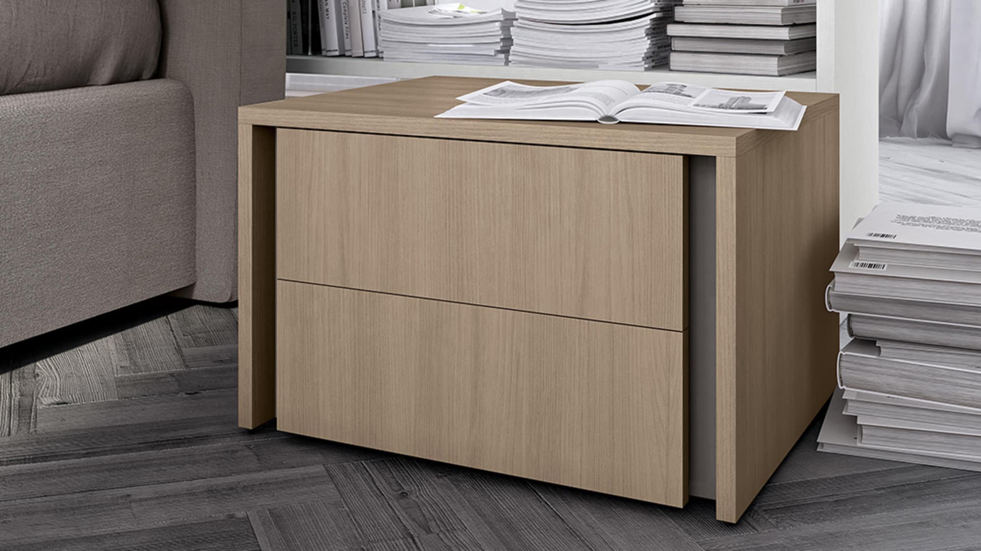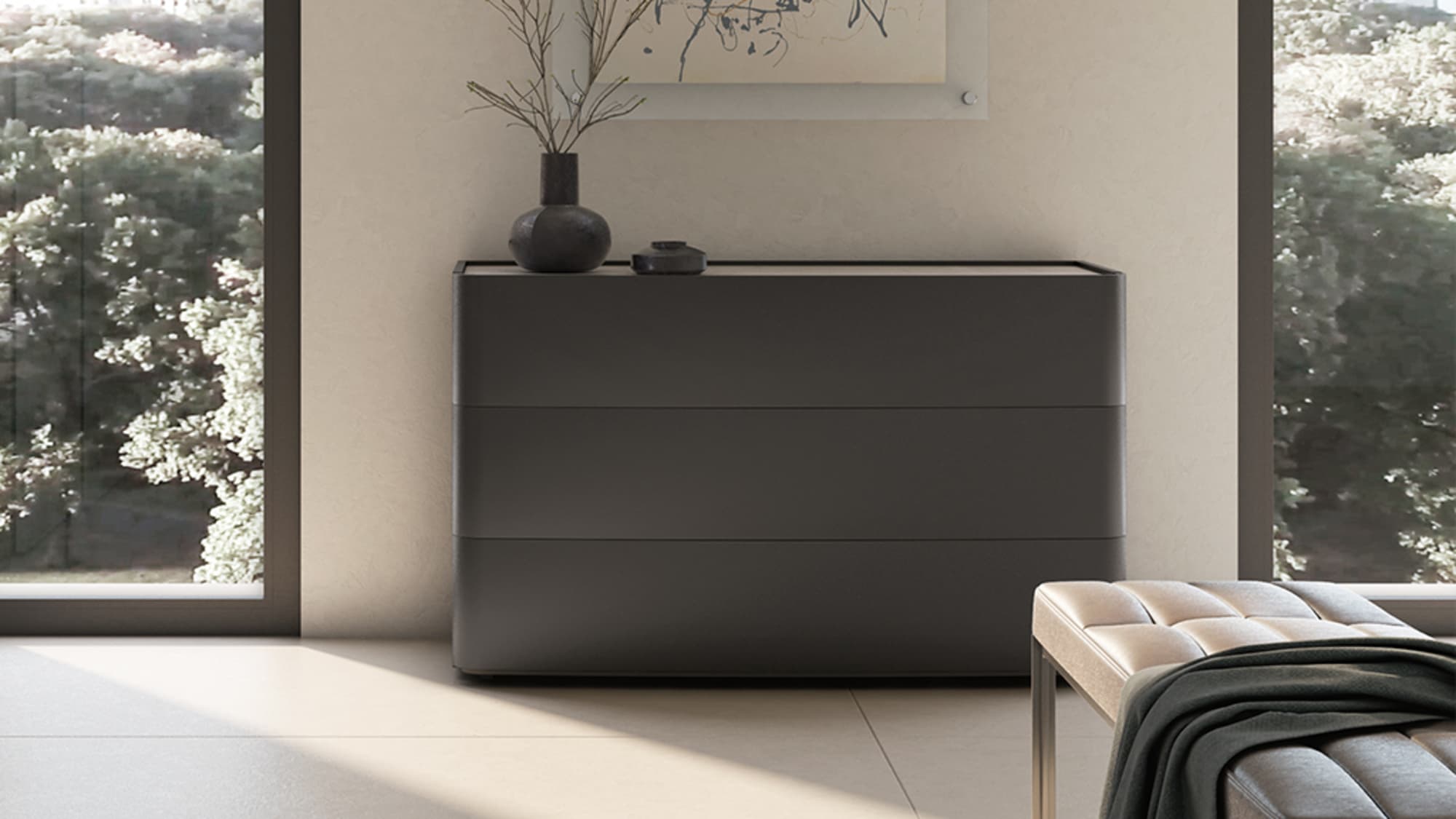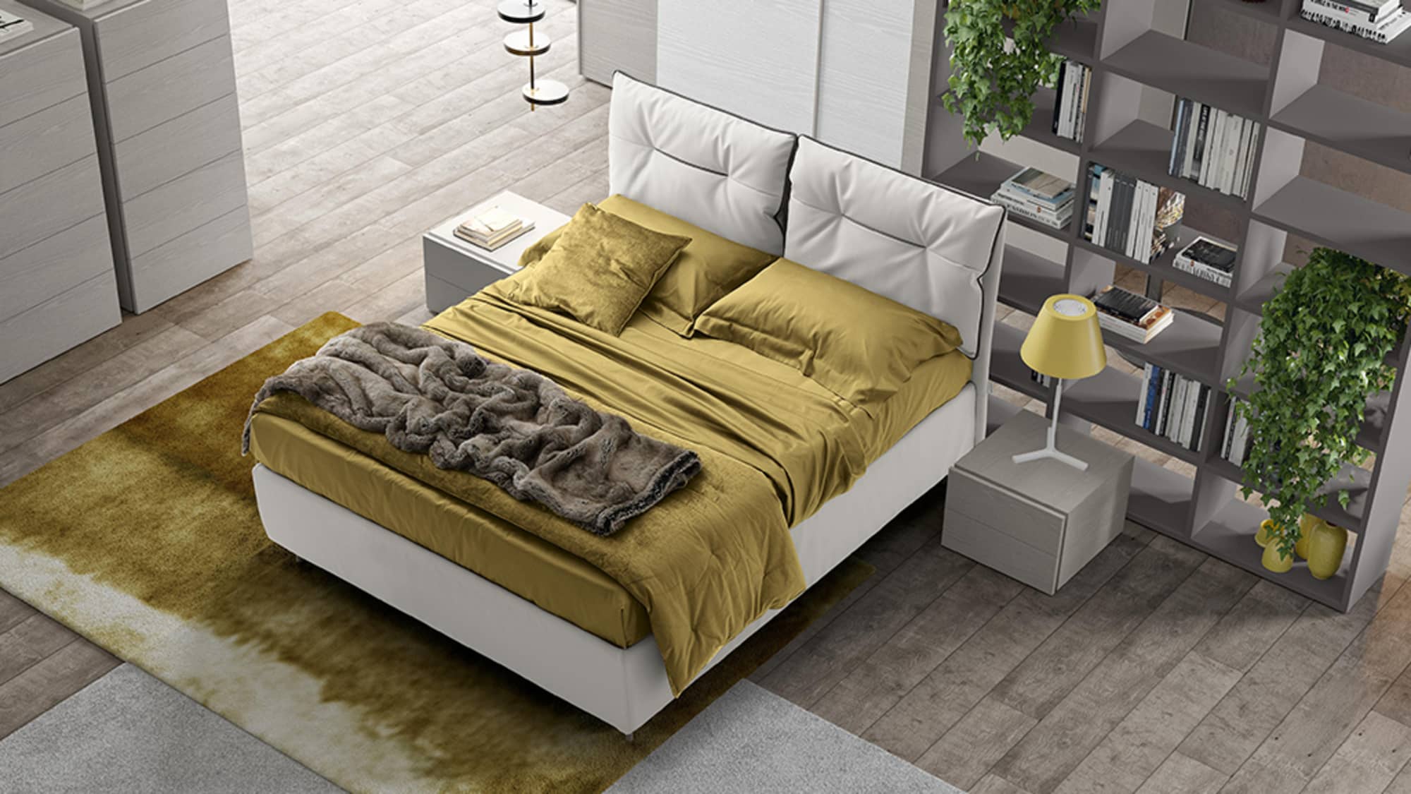 Con la linea Colombini Casa porti il design minimal all’interno della tua camera da letto! Vasta scelta di modelli e di colori, come le nuovissime finiture materiche. Molto curate le gole dei cassetti e davvero particolare l’uso del vetro applicato su essi. Vastissima gamma di testate per i letti con la possibilità di averli anche imbottiti.