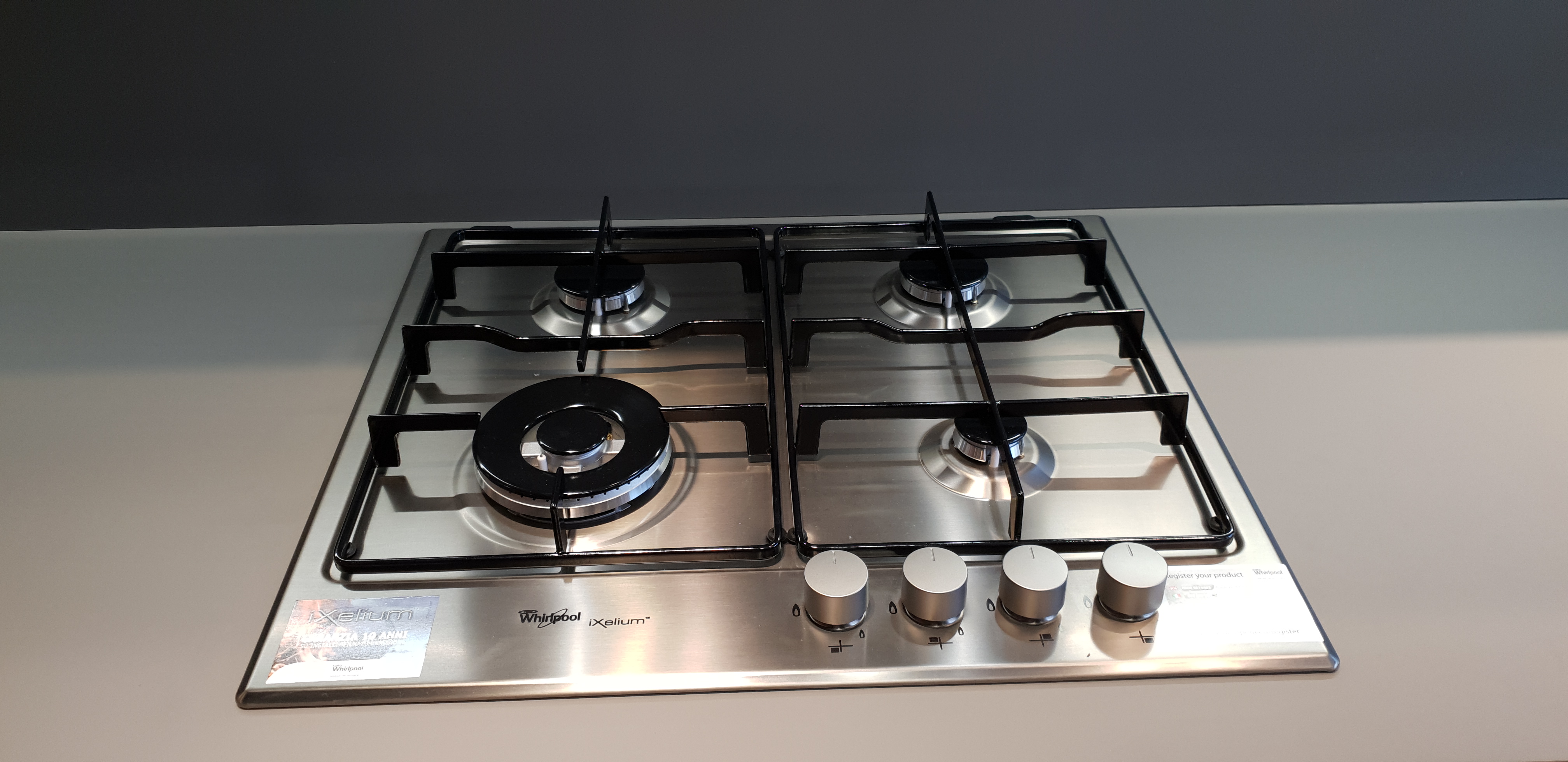 Piano cottura: Whirlpool 4 fuochi con griglie verniciate.