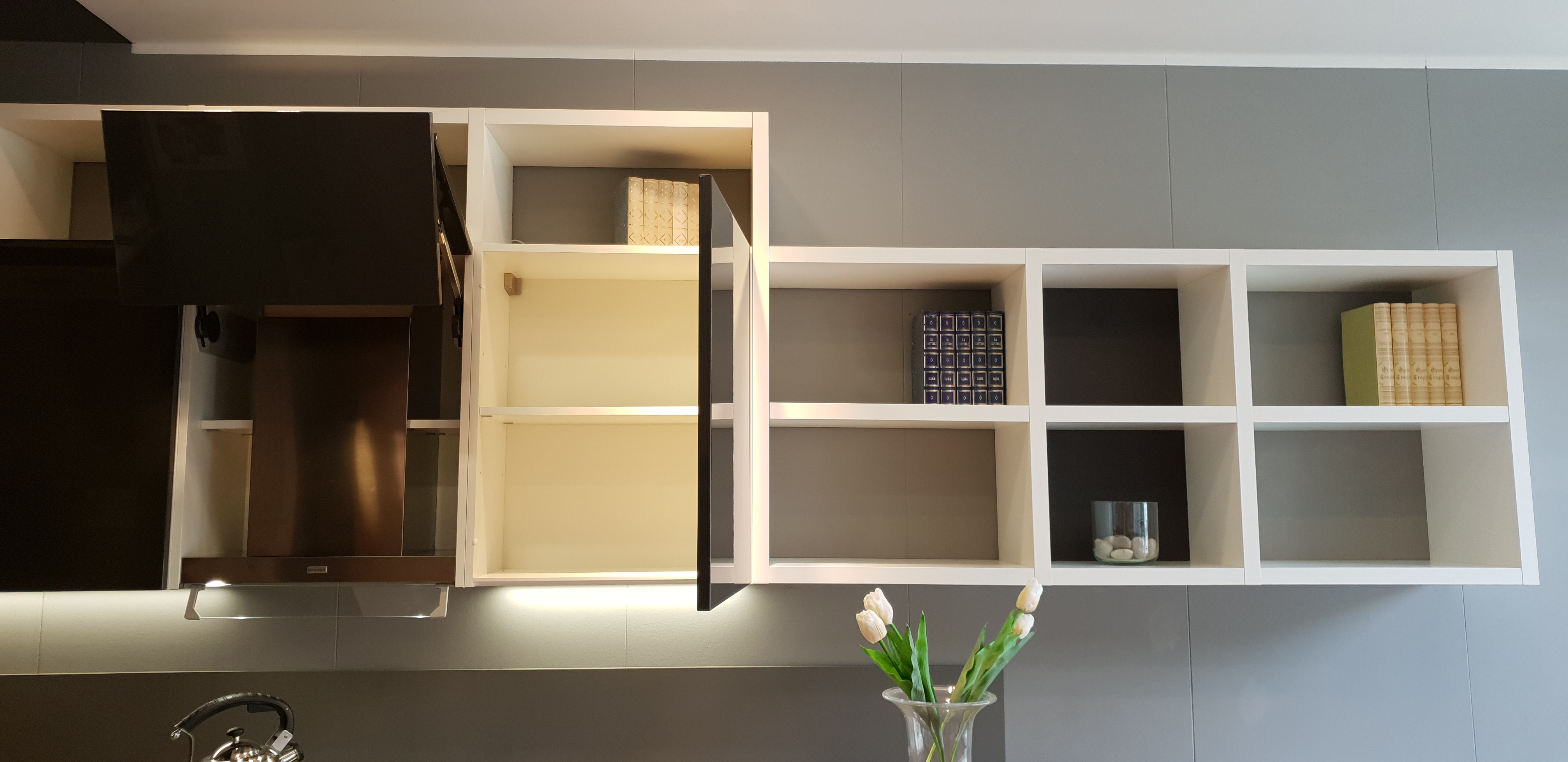 Motus con l’accattivante maniglia integrata nell’anta rende la composizione più pulita ed e lineare.