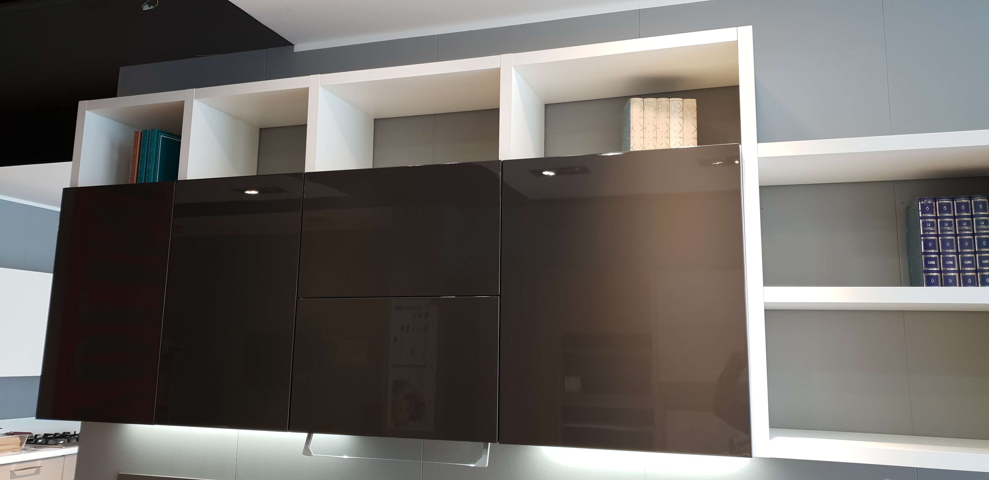 Cucina Scavolini mod. Motus decorativa con pensili laccati lucidi