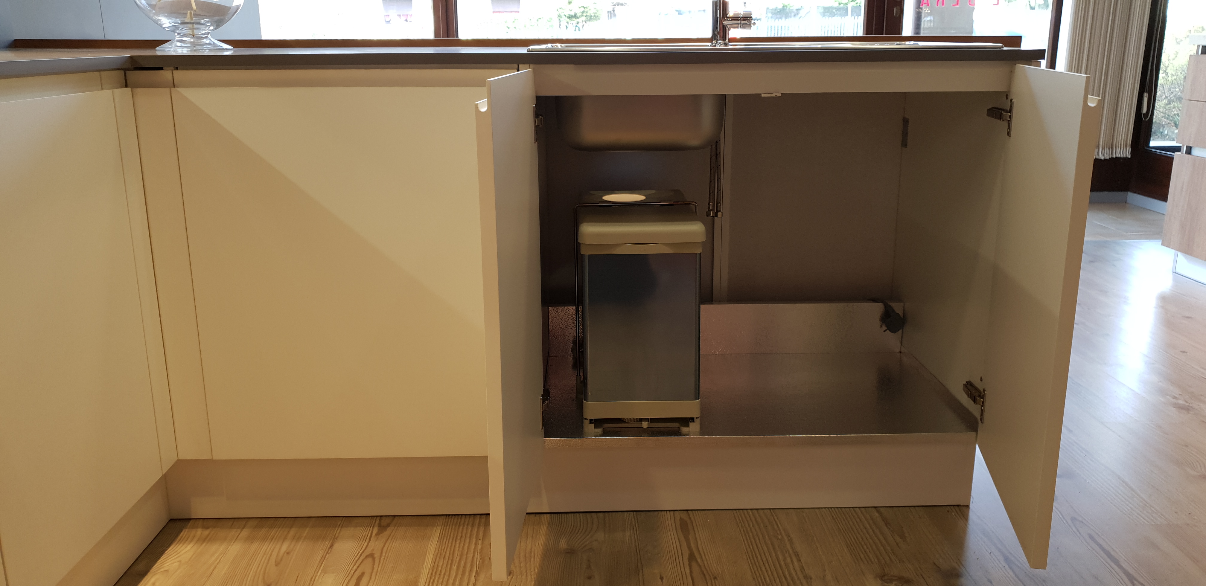 Base lavello con pattumiera scorrevole inox con 2 scomparti per la raccolta differenziata.