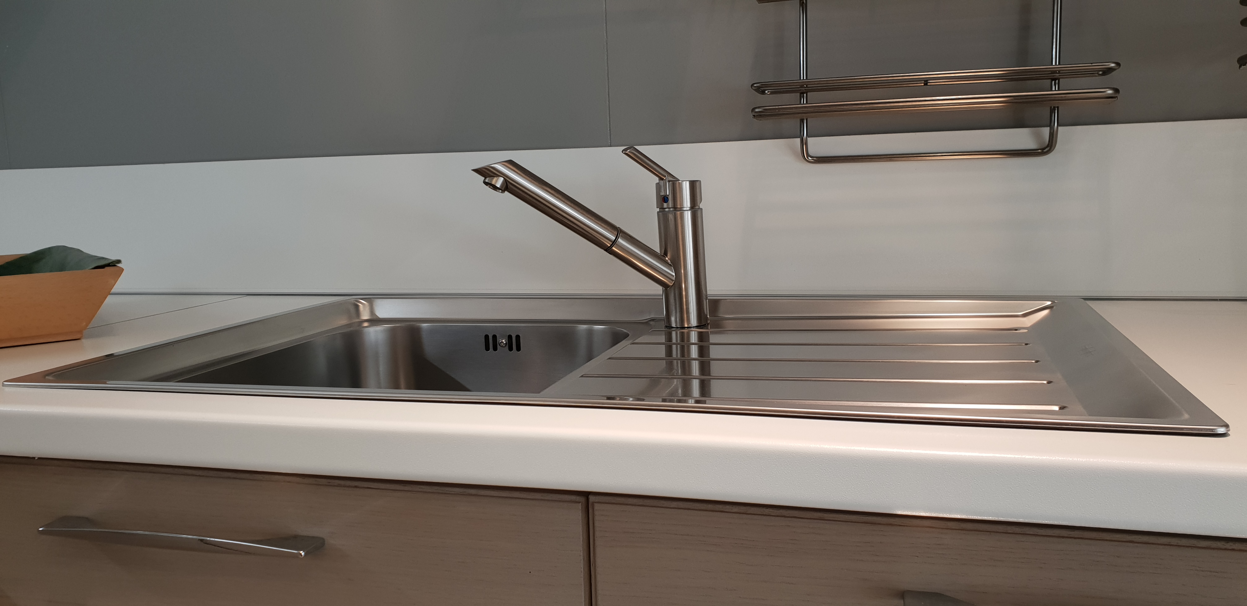 Lavello: 1 Vasca con scivolo inox da incasso Franke , completo di miscelatore.