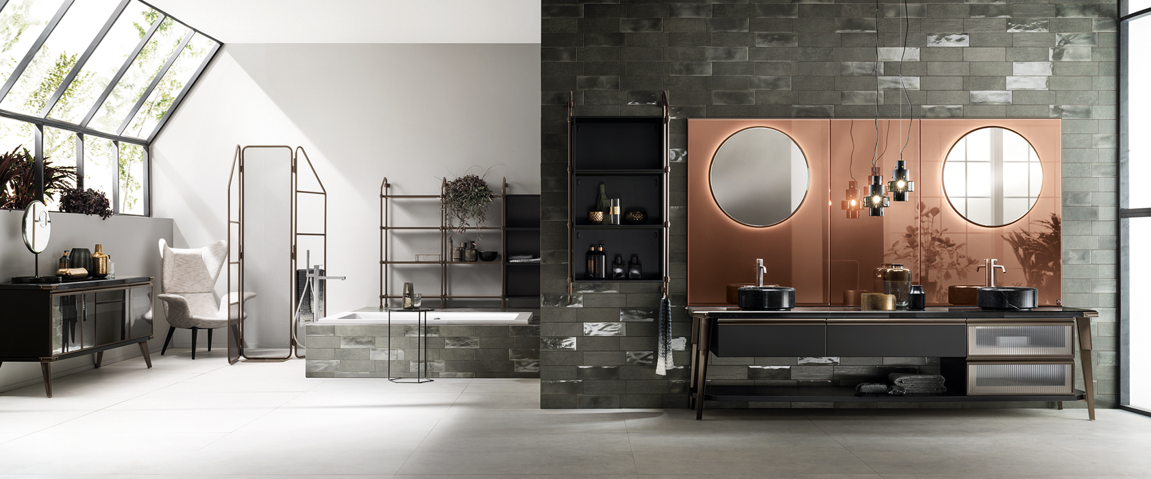 Diesel esporta lo stile che ha rivoluzionato l’estetica della cucina nell’arredo bagno, presentando un progetto ambizioso in cui il segno industriale ne rappresenta la forte personalità.